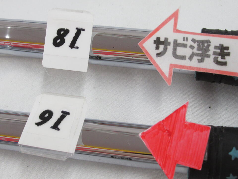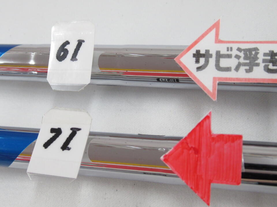シャフトにサビ浮きあります。7IとUのソール、フェースの下地が見えています。