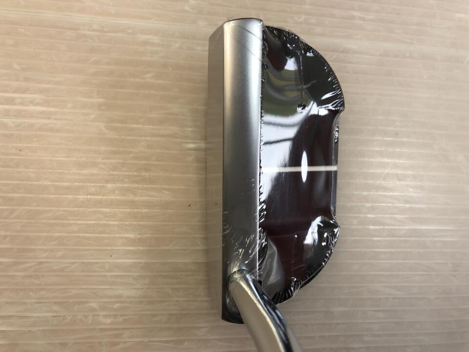 構えた時にシルバーのラインでアライメントしやすいです。1本の白線とボール幅の溝がありボールに合わせ易いです。