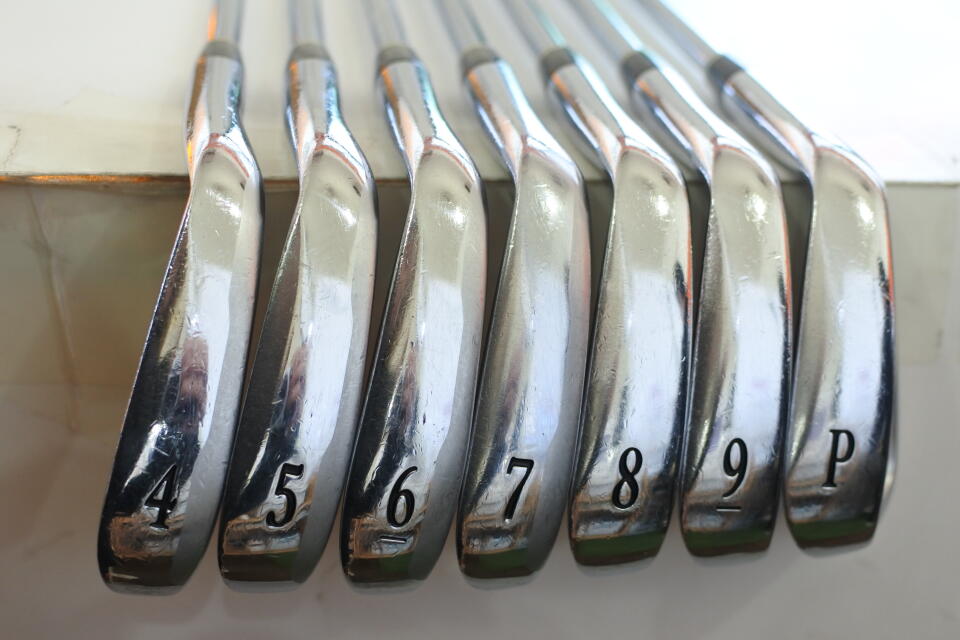 シャフトにサビ浮き跡があります。4番アイアンのみリグリップされています。