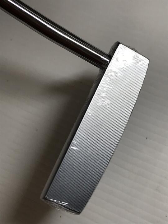 構えた時にシルバーのラインでアライメントしやすいです。1本の白線とボール幅の溝がありボールに合わせ易いです。