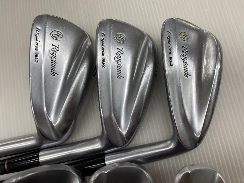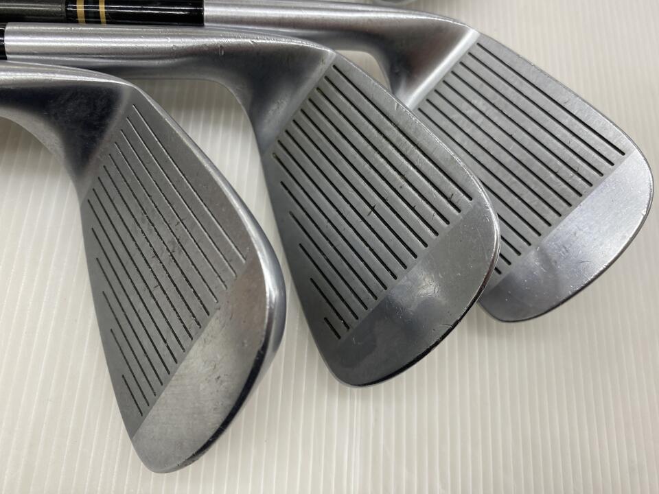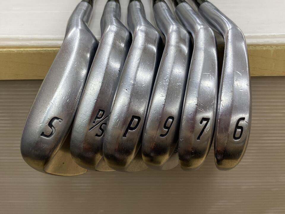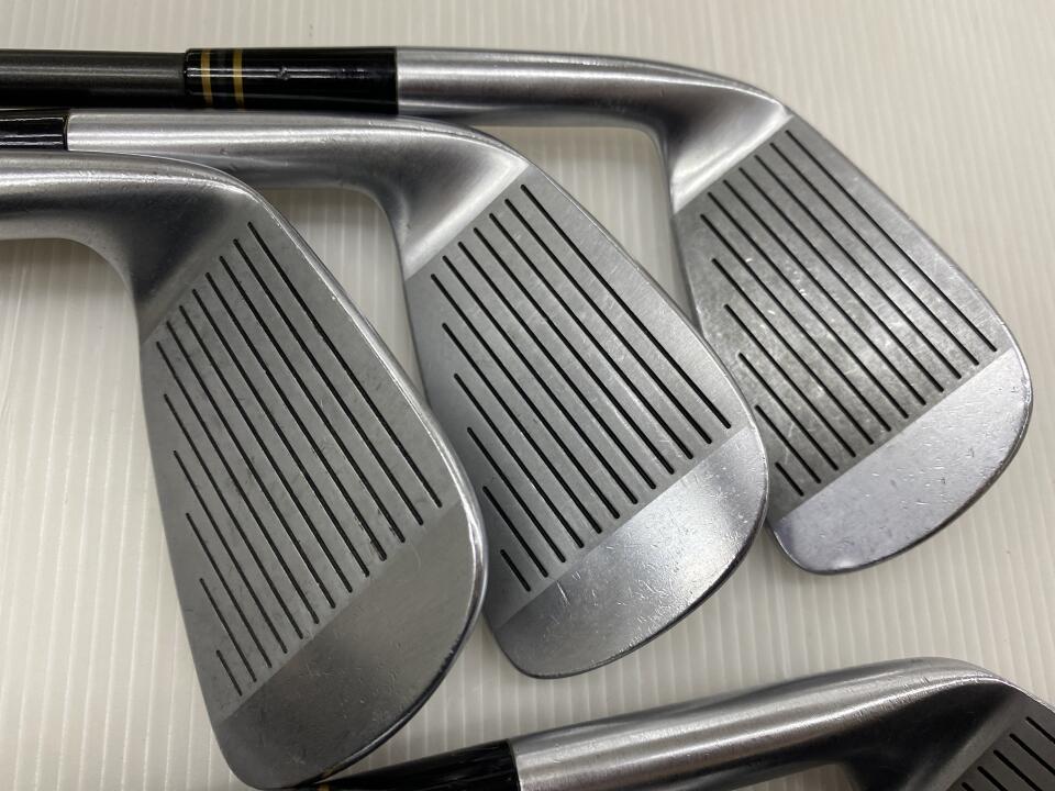 3から9番 PW PSの9本セットです。プロモデルではありませんのでフェイスも大きく構えやすく低重心で球が上がりやすいです。シャフトはキックアジャストライトでロングアイアンではキックポイントを下げ球を上がりやすくして距離を稼ぎ、ショートアイアンではキックポイントを上げて吹けあがりを抑えて距離の安定と方向性重視の設計です。シャフトのトルクが少なく方向のぶれが少なく設計してあります。ヘッドもロングアイアンは重心を低く重心距離を長くグース度を増して球のつかまりを良くし、ショートになるほど逆の設計で方向性と距離のばらつきを抑える設計です。グリップシャフトとも新品時オリジナルのままです。グリップはバックライン入りロイヤルグリップで雨の日も全く滑りません。___SPA___SWがありません。ソールとフロントエッジトウ側に傷があるのが何本かあります。
