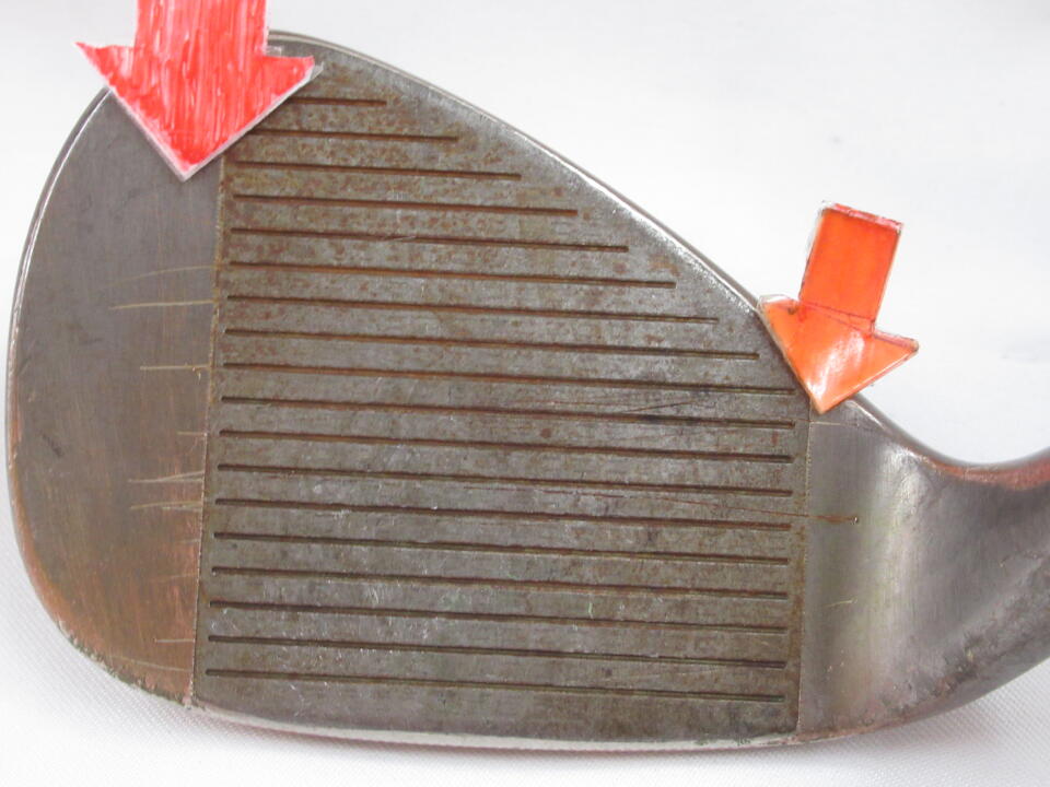 ソールの下地が見えています。ネックにキズあります。フェースに線キズあります。