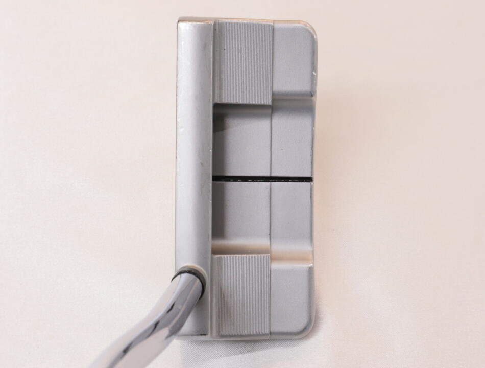 やや幅広のヘッドが安心感を与え、構えたときの安定感が高い。アライメントラインがしっかりしており、ターゲットに合わせやすい。