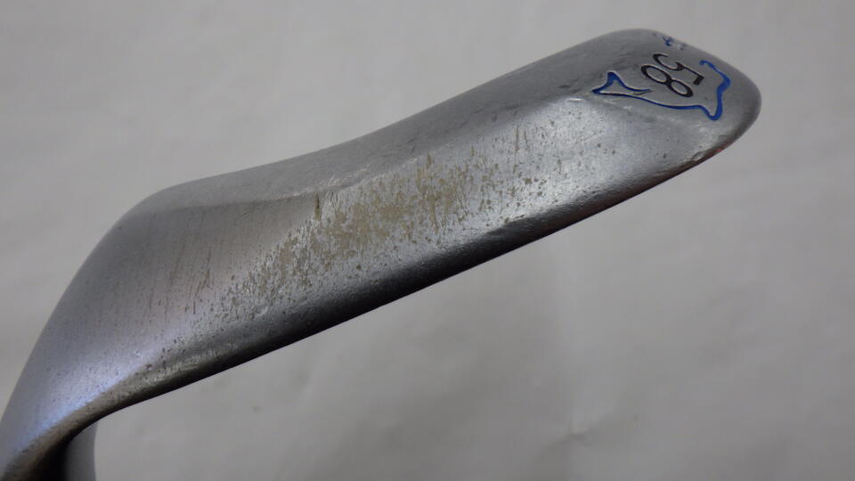 バンカーからオープンスタンスに構えなくとも、いとも簡単に脱出できる数少ないウェッジである。4cm手前から入れるイメージでサクッと振り抜くだけで、ミス少なくして玉がふわりと上がる。形はヘンテコリンだが、一度やみつきになると手放せない。