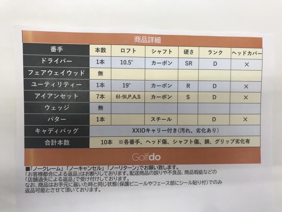 | ヘッドカバー | なし | 付属品 | -:元々付属なし |
