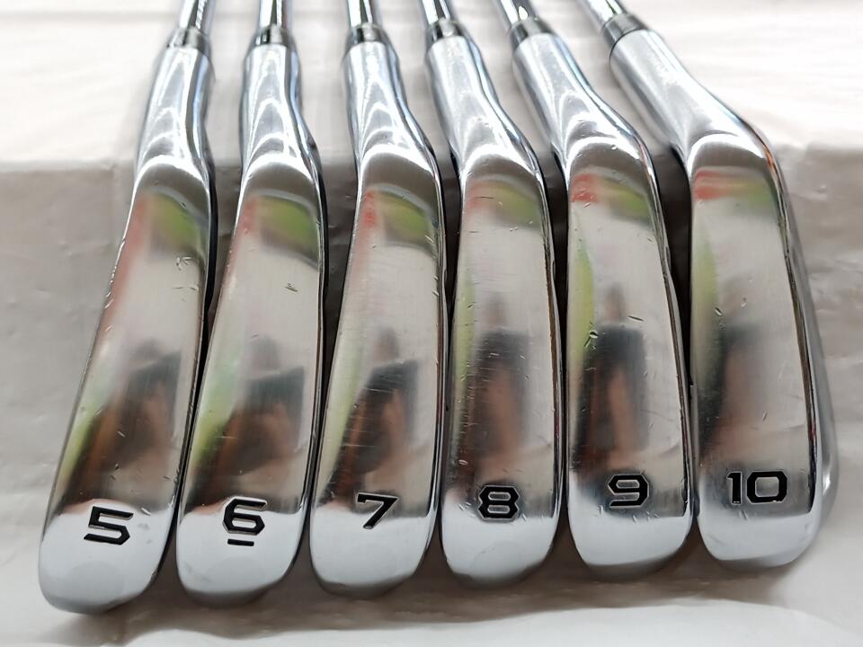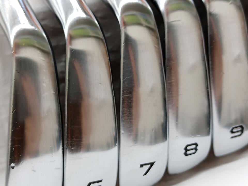 軟鉄(SC20)であることから、打感が柔らかく打った感触が無い。その為か、ラウンド中もアイアン1本毎にカバーをかけておかないとアイアン同士がぶつかり合って凹み傷が直ぐに出来てしまいますのでご注意下さい。ライ角は、小生には、アップライトの為、全番手1度フラットにしてます。