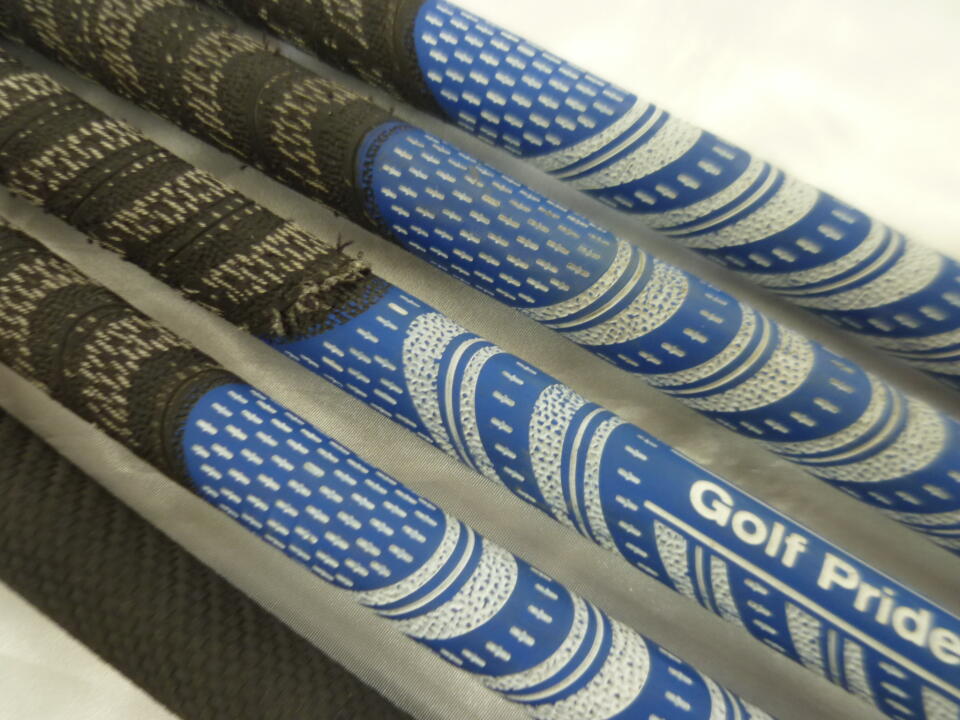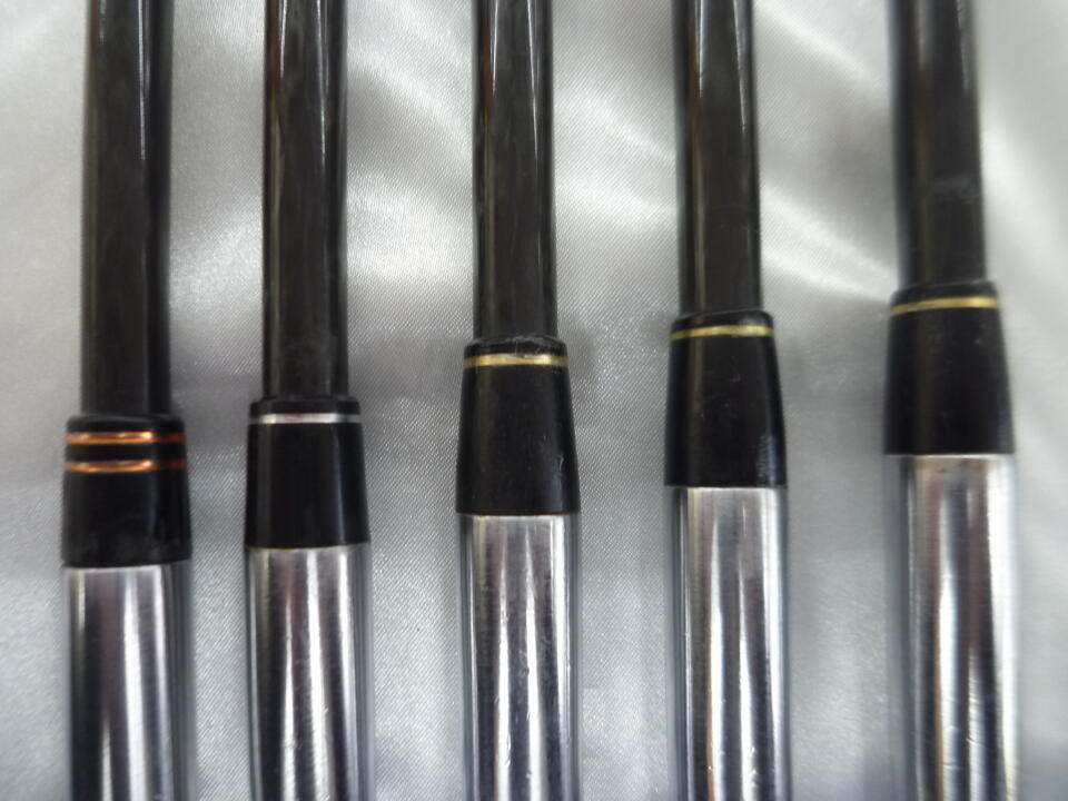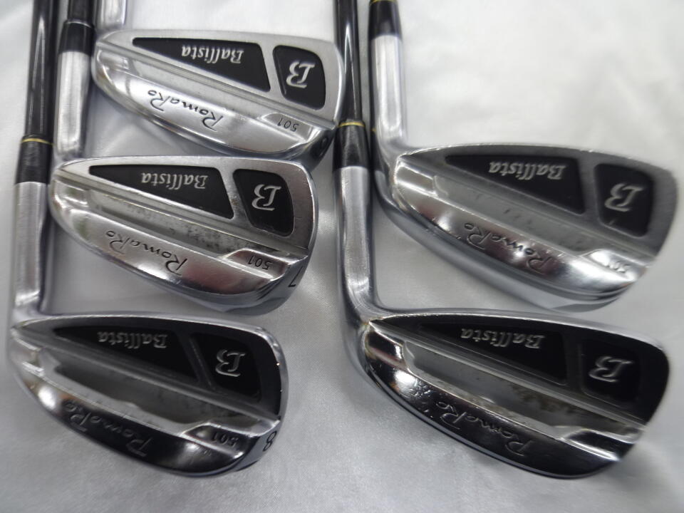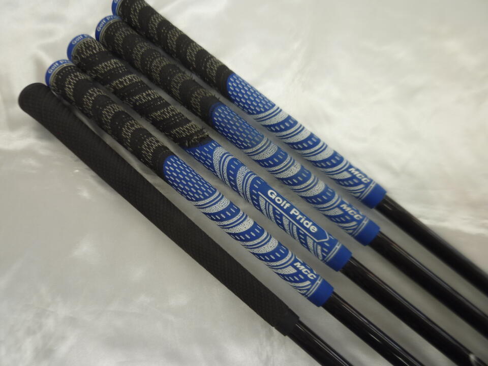 ヘッド全体にキズ多めです。Pシャフトに塗装カケあり、6.7Iのソケット種類違います。6Iのみグリップの種類ちがいます。8Iグリップ劣化し、ロゴ裏です。 | ||