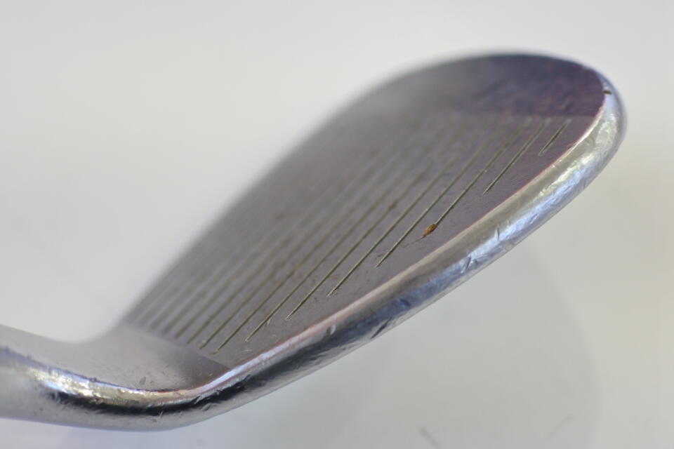 ティアドロップ形状で、許容範囲が広く見え、ワンピースな打ち方をする人にはよいでしょうね。ソール幅が広めで、クラブの据わりもよく、フェアウェイや硬いバンカーからのショットに有効かな。___SPA___ソールのヒール側にもう少し削りを入れれば、あれこれ出来るクラブに変身しそうです。___SPA___ボーケイにしては大ぶりなヘッド。クローム加工で光の反射は気にならない程度に抑えられます。スピン性能はお墨付き!このソール形状なら58よりも60のほうがよいかと。