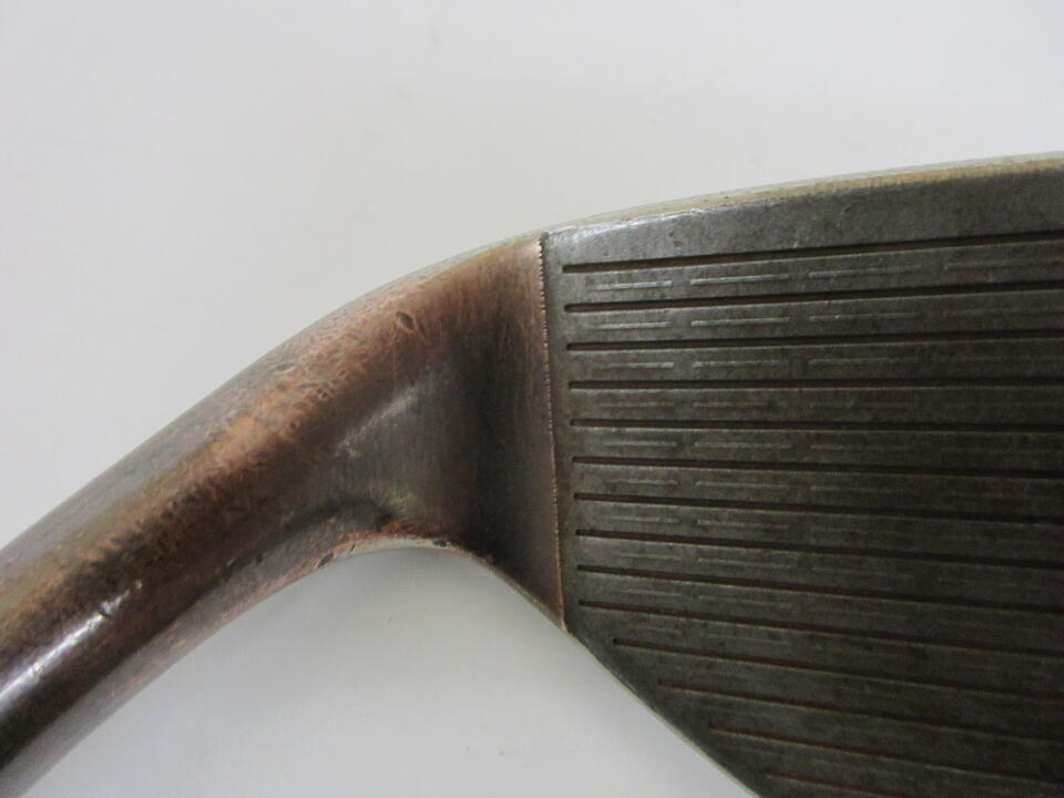 トゥ側が高く大きい印象がありますが、構えにくい顔と思う方は少ないと思います。デザインはカッパー色で日差しの反射にも強いです。