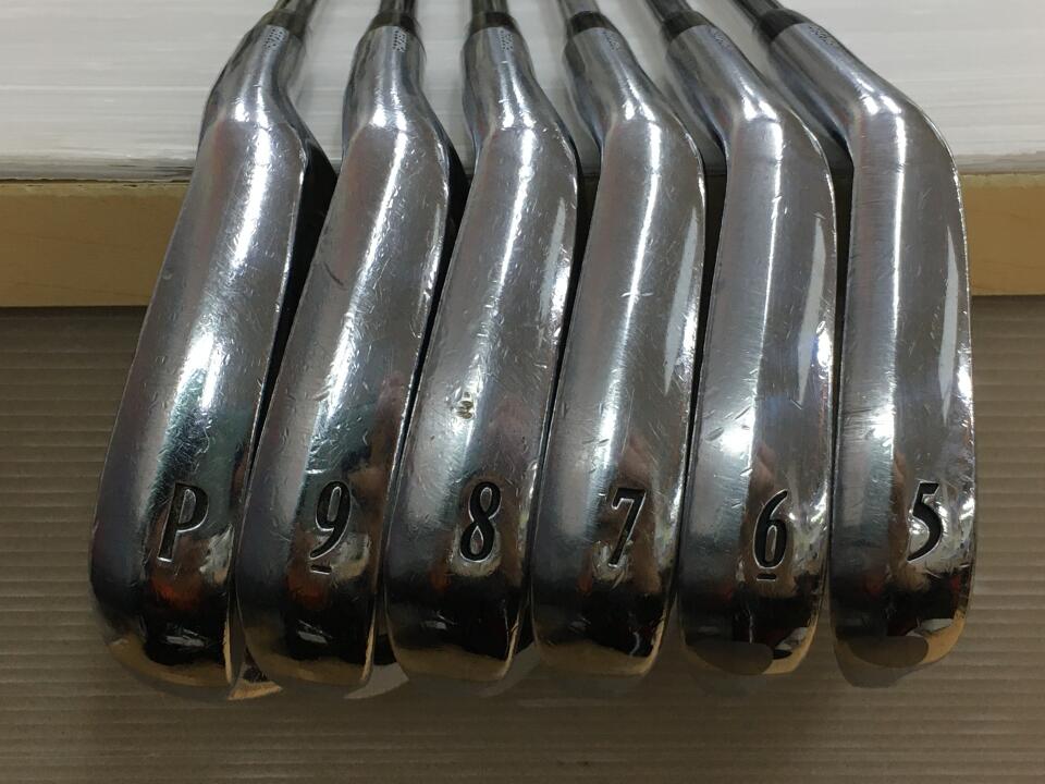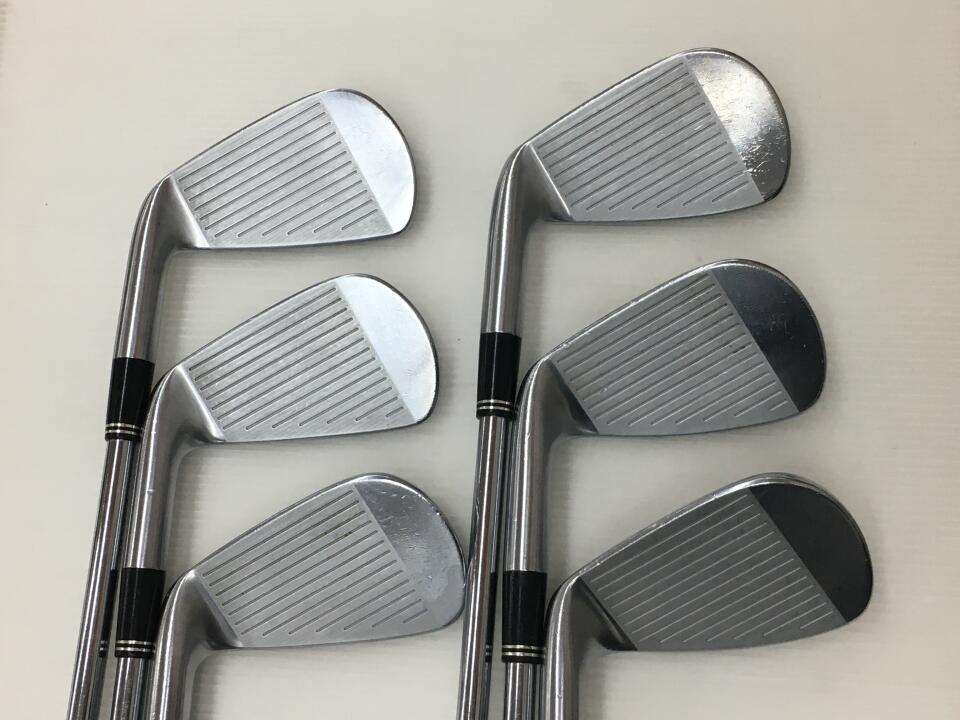 ソール面、線傷あり。フェース面、当たり傷あり。グリップ硬化のため交換推奨。8Iのソール面、石打傷あり。シャフトロゴに剥がれあり。