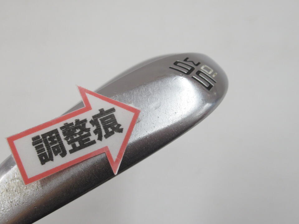 グリップがかなりフックに挿してあります。ロフト56度を58度に調整してあります(お客様申告です)。ソールに下地見えてます。ネックにキズあります。