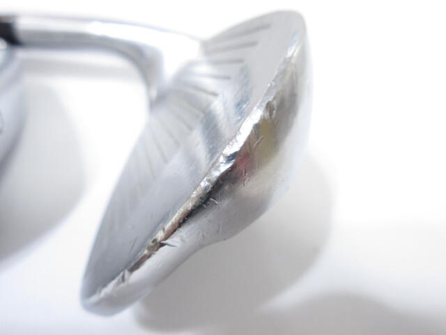 当たりキズが多くあります。石噛み傷あります。SWのソールのメッキが剥がれています。シャフトラベルが剥がれています。グリップは裏挿しで劣化しています。