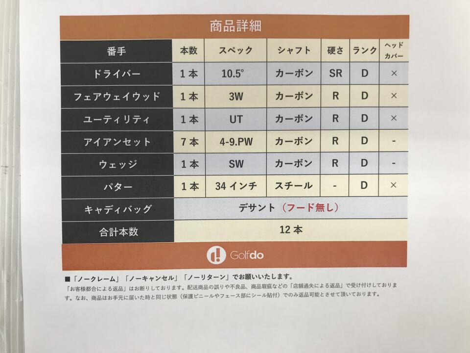 クラブのヘッドとシャフトに傷、欠けあり。キャディバッグのフード無し。グリップ要交換推奨! | ||