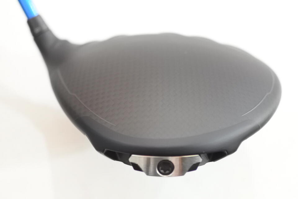 フェース向きはスクエアなので左のミスが怖いゴルファーには構えやすい形状です。クラウンにカーボンが採用されており、その結果クラウンがツートンカラーに見えますが、テークバックを引きやすく感じました。