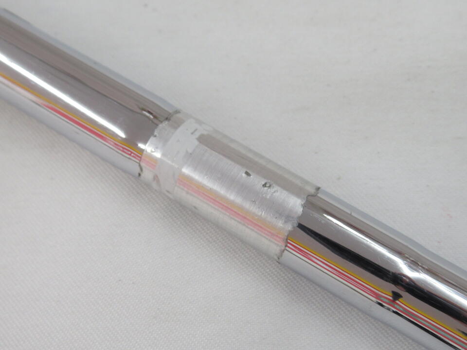 ソールの下地が見えています。トゥ側にキズあります。バックフェースの表面の一部塗装剥がれあります。フレックスラベル剥がれています。