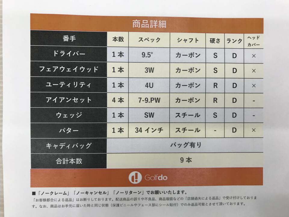 | ヘッドカバー | なし | 付属品 | -:元々付属なし |