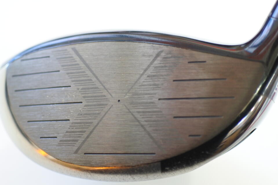 一緒にラウンドした友人から後半借りて打ちました。一発目は高弾道の軽いフェードでした。