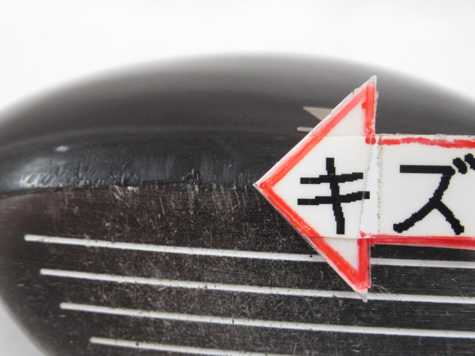 クラウンにヘコミあります。ヘッド全体にキズ、塗装剥がれあります。シャフトにキズあります。シャフトう印字が薄れている為外観からのフレックス判別不可。