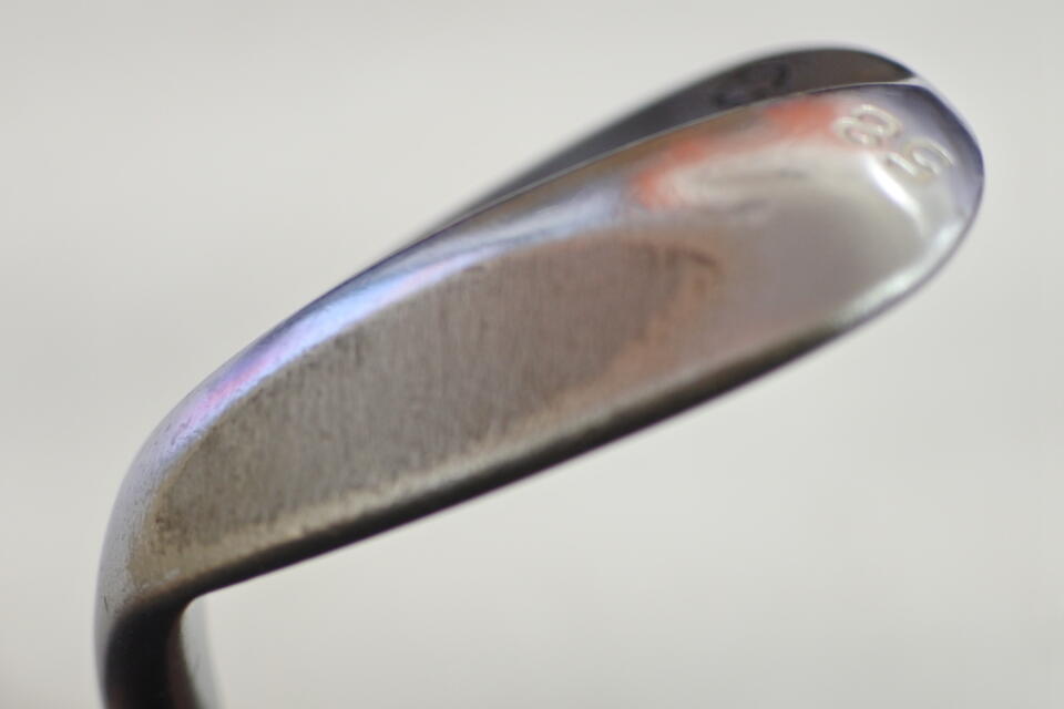 ティアドロップ形状で、許容範囲が広く見え、ワンピースな打ち方をする人にはよいでしょうね。ソール幅が広めで、クラブの据わりもよく、フェアウェイや硬いバンカーからのショットに有効かな。___SPA___ソールのヒール側にもう少し削りを入れれば、あれこれ出来るクラブに変身しそうです。___SPA___ボーケイにしては大ぶりなヘッド。クローム加工で光の反射は気にならない程度に抑えられます。スピン性能はお墨付き!このソール形状なら58よりも60のほうがよいかと。