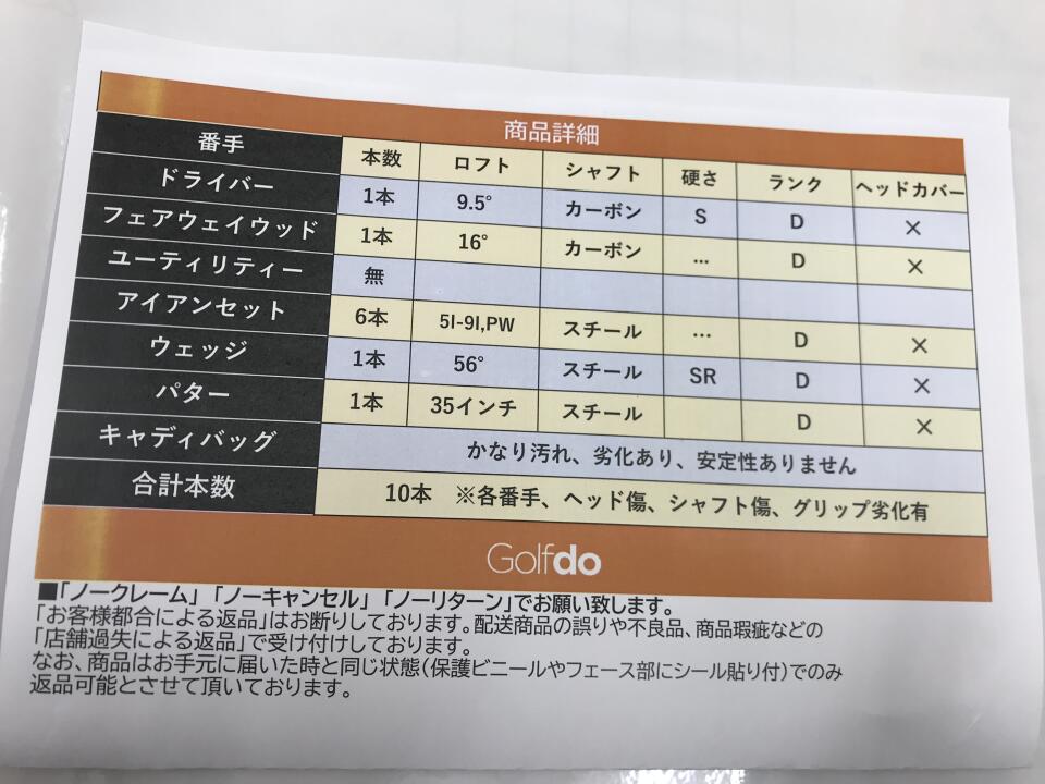 | ヘッドカバー | なし | 付属品 | -:元々付属なし |