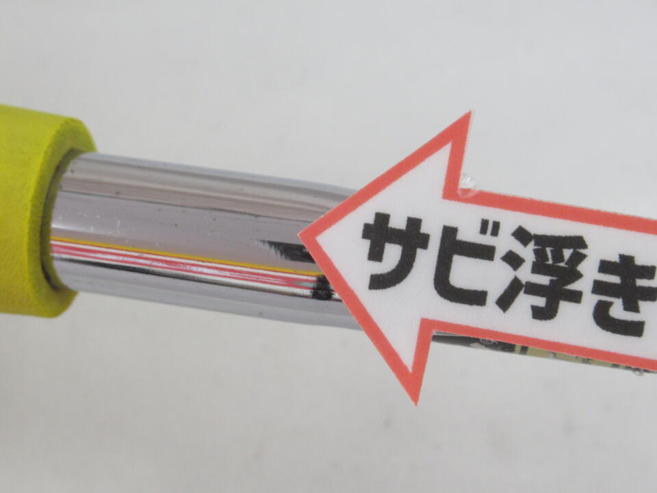 グリップがパター用になっている為交換が必要です。シャフトにサビ浮き、キズあります。トゥ側にキズあります。 | ||