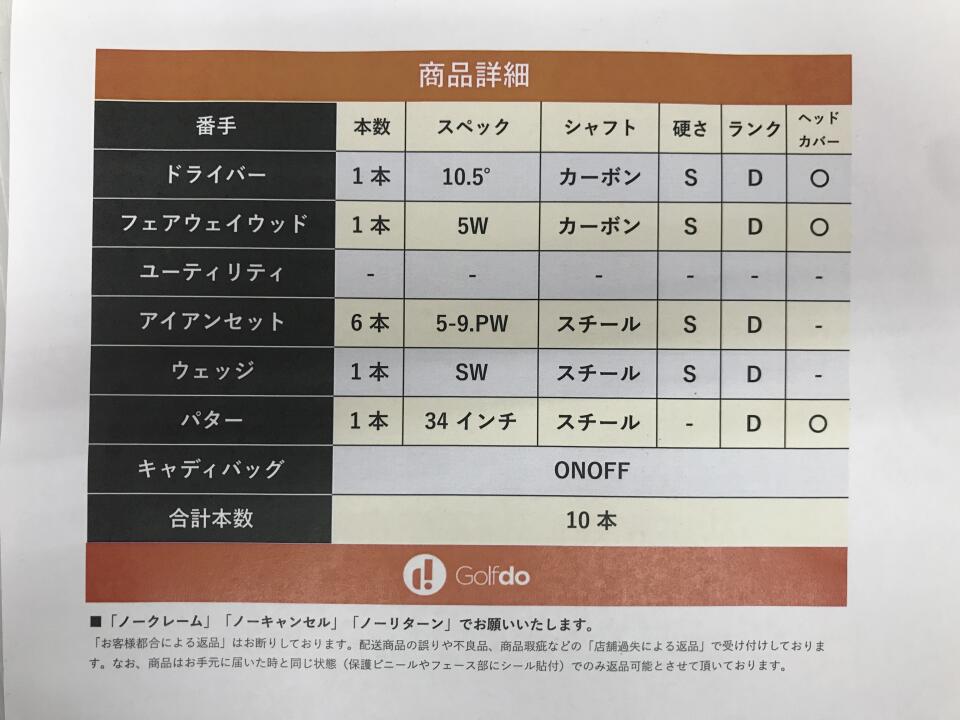| ヘッドカバー | あり | 付属品 | -:元々付属なし |