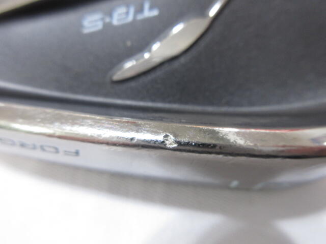 シャフトのロゴが一部剥がれています。バックフェースに傷があります。当たり傷や擦り傷があります。