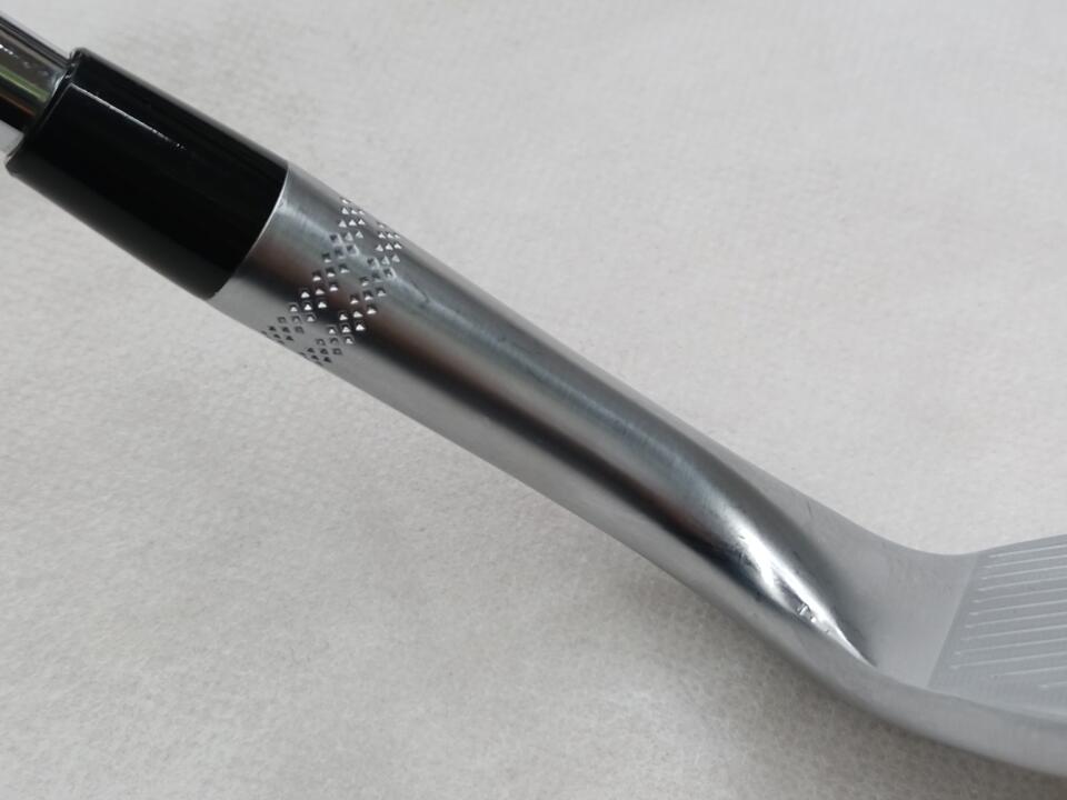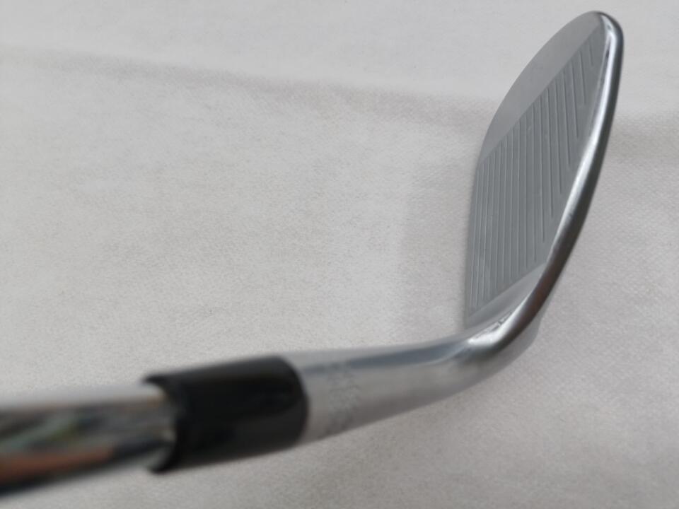 やや小ぶりなストレートネックで、フェースを開いても構えやすい形状です。室内の試打ルームでしか打っておりませんが、太陽の光を反射しにくそうなクロムメッキ仕上げだと思います。