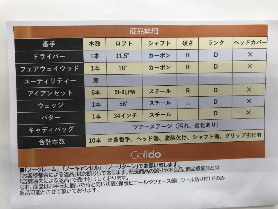 | ヘッドカバー | なし | 付属品 | -:元々付属なし |