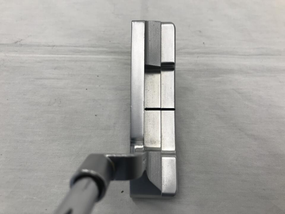 このパターは、削り出しで重量感もあり構えやすく、ボールの転がりも良い。実戦でまだ使っていませんが、コースで使うのが楽しみです。