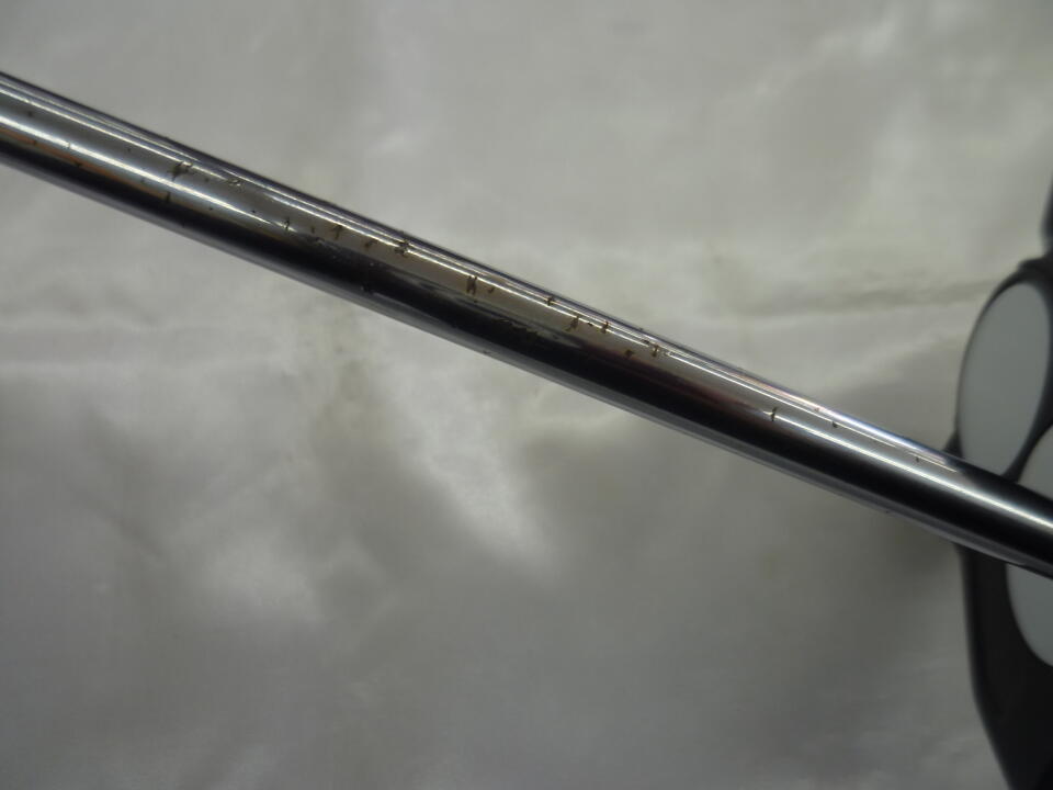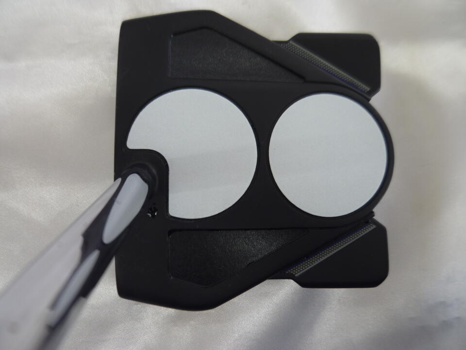 構えると方向が定まりにくいので、ヘッドの上に打つ方向と直角に白い線を引いて方向を分かりやすくしたが、やはり右に出ることが多く感じる。