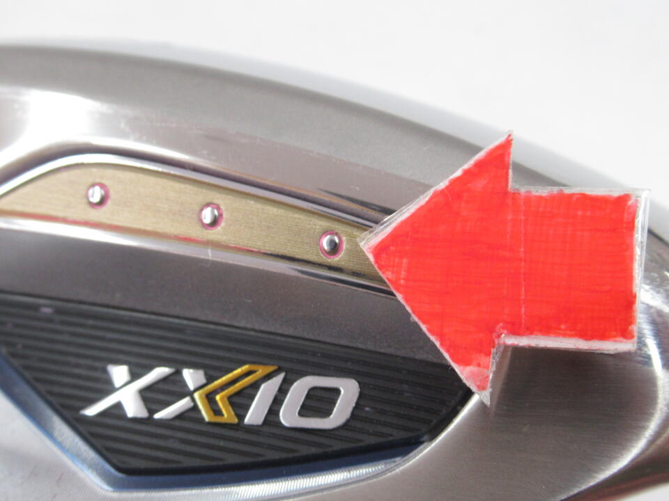 ソールの番手がピンク色に塗ってあった為黒色のマニキュアで補修してあります。バックフェースの一部ピンクの塗料が残っています。