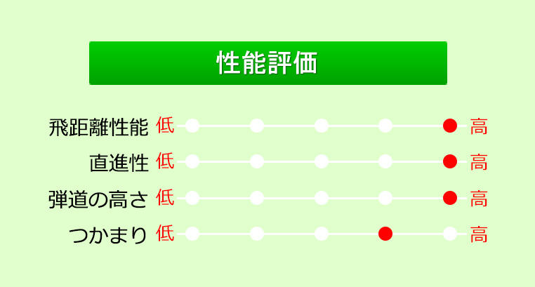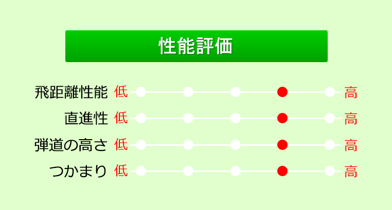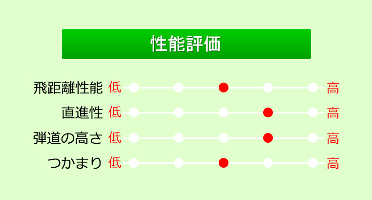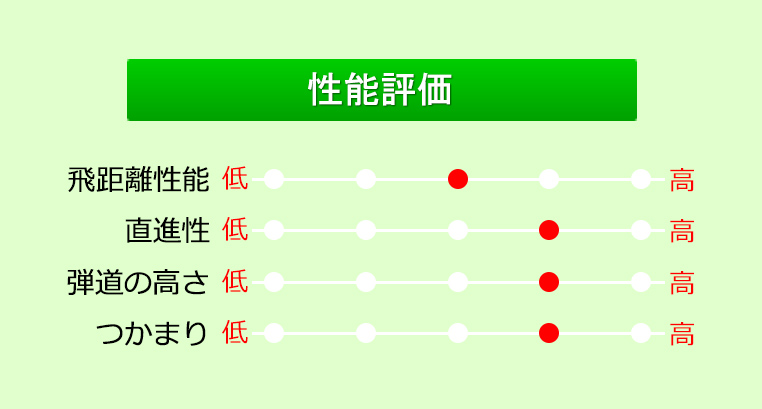 オーソドックスな形状ながら、ミスへの寛容性は高くなっている。飛距離性能はポケットキャビティの標準的な飛距離だが、スピン量が安定しやすく距離のばらつきが少ないのでグリーンを狙いやすい。
